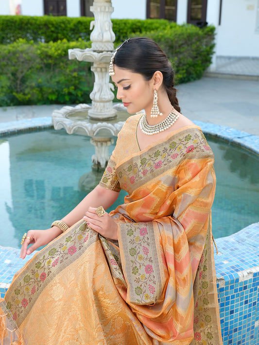 Warm Beige and Golden Floral Jaal Cotton Muslin...