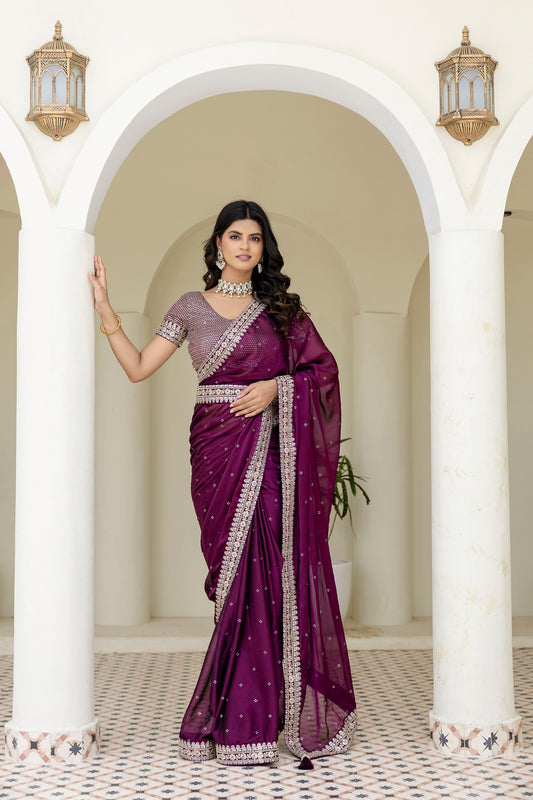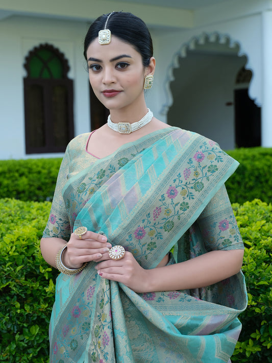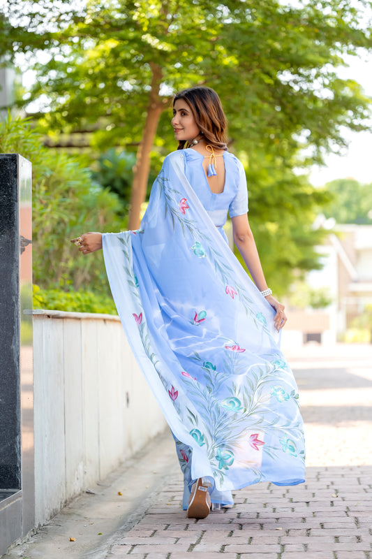 Chiffon Sky Blue Saree Featuring Delicate Hand ...