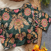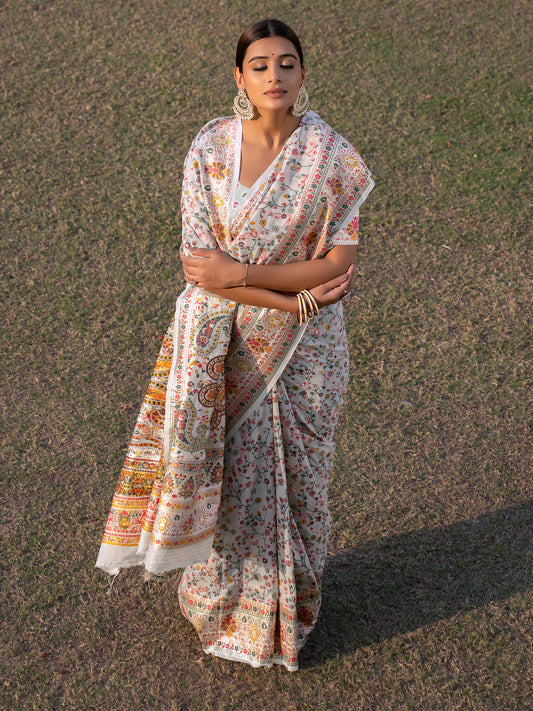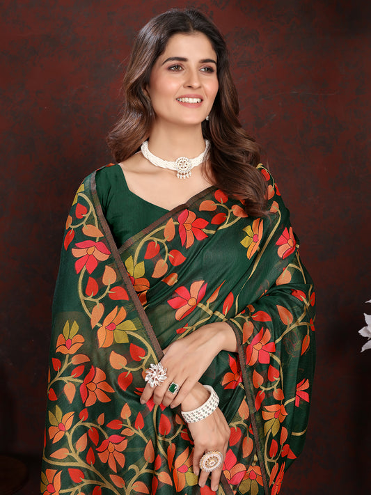 Vibrant Green Cotton Muslin Saree with Multicol...