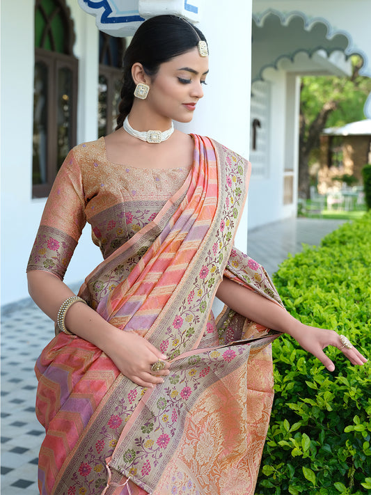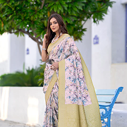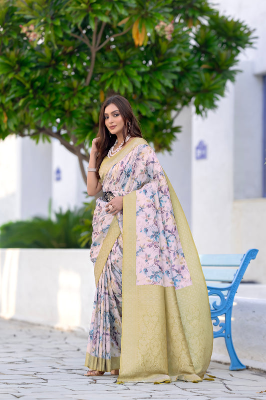 Lovely Pink Floral Jaal Cotton Muslin Saree